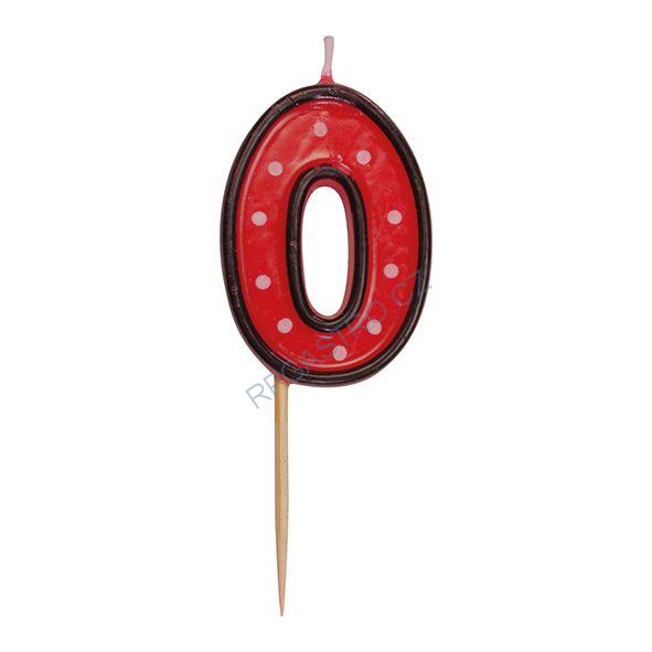 Číslové svíčky na špejli červené - "0" / 50 mm / 1 ks.