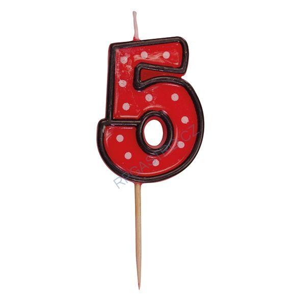 Číslové svíčky na špejli červené - "5" / 50 mm / 1 ks.
