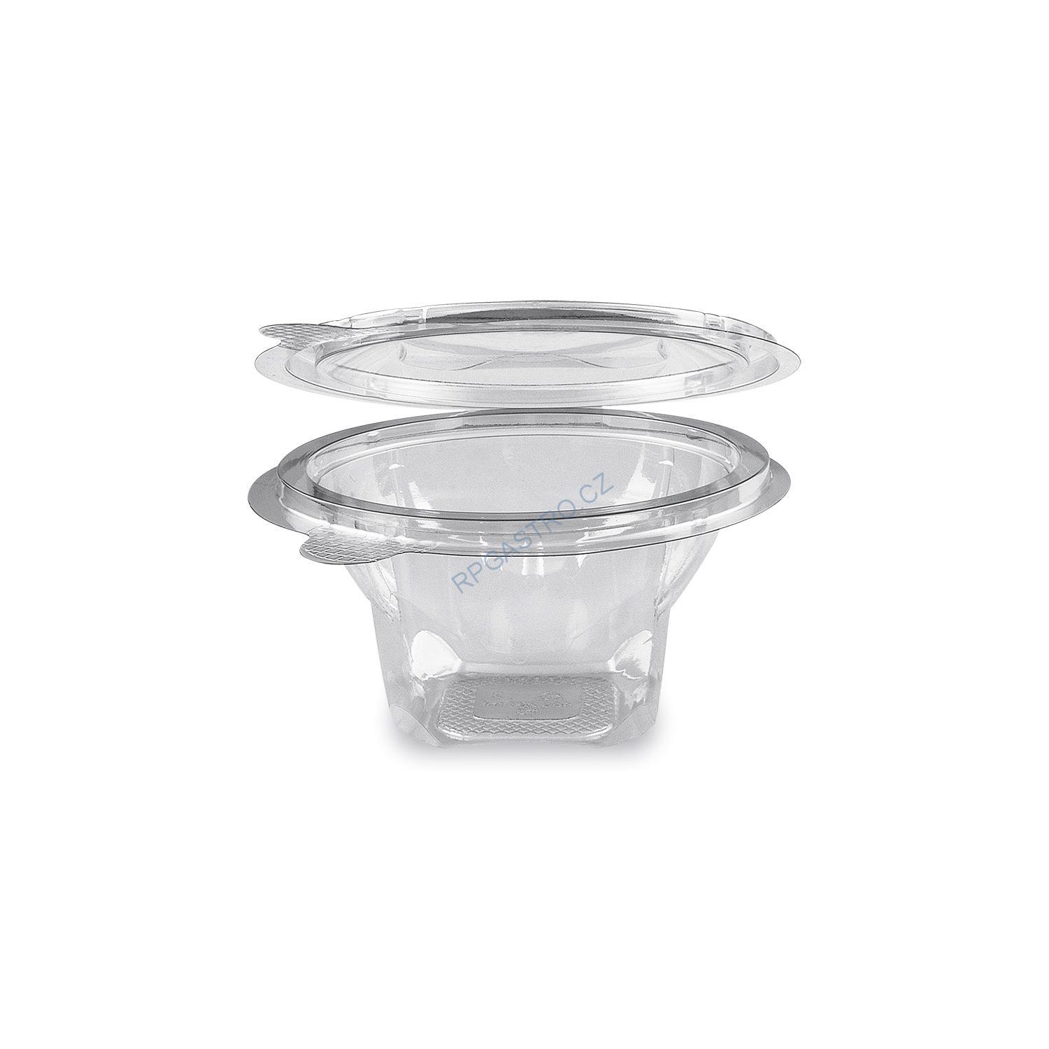Průhledné kulaté misky z rPET s integrovaným víčkem 250 ml / 50 ks.