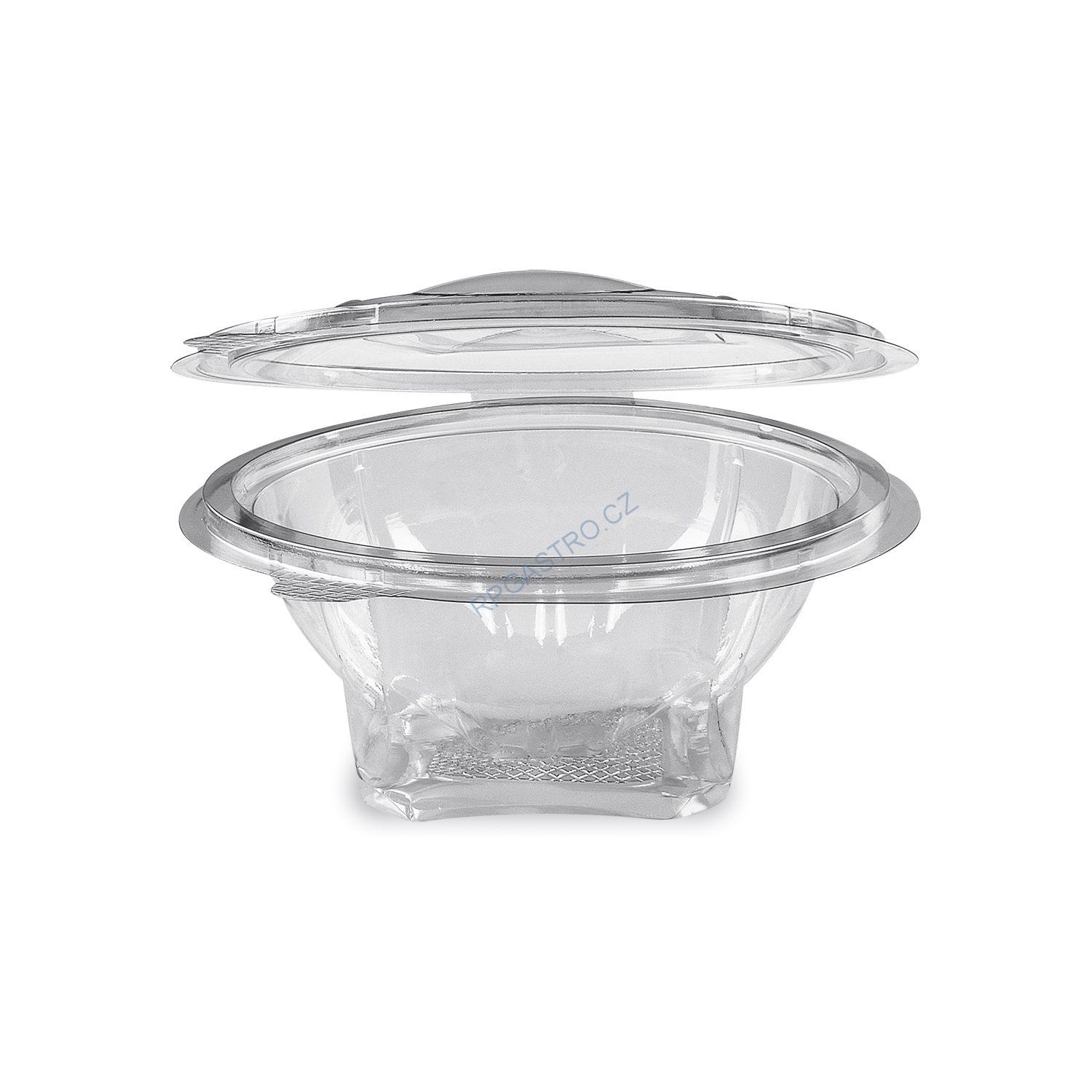 Průhledné kulaté misky z rPET s integrovaným víčkem 500 ml / 50 ks.