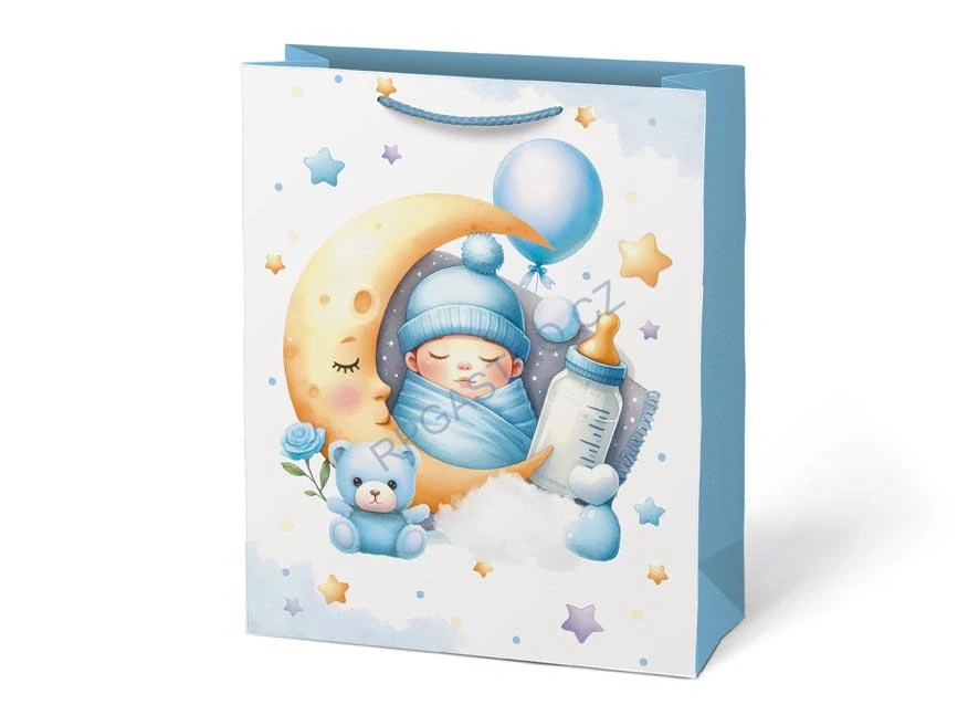 - Dárková taška dětská vel.L modrá s miminkem (26 x 32 + 14 cm), 1 ks (5252826.1)