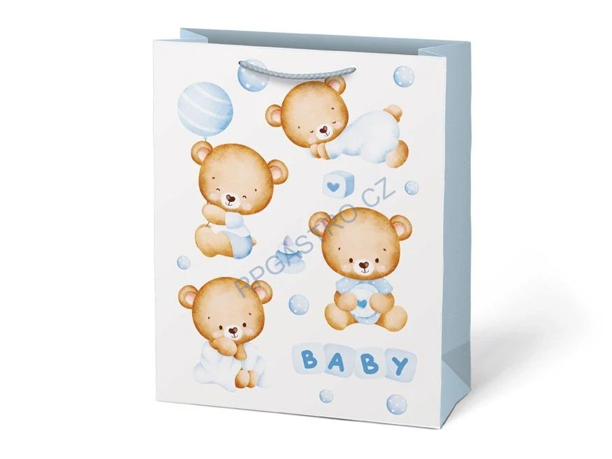 - Dárková taška dětská vel.L modrá s medvídky (26 x 32 + 14 cm), 1 ks (5252826.2)