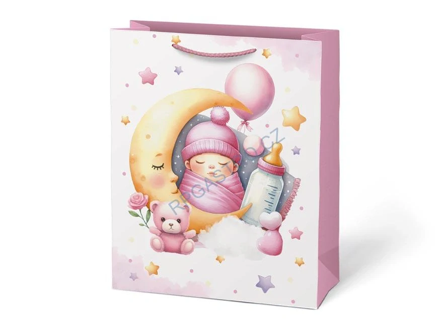 Dárková taška dětská vel.L růžová s miminkem (26 x 32 + 14 cm), 1 ks (5252826.3)