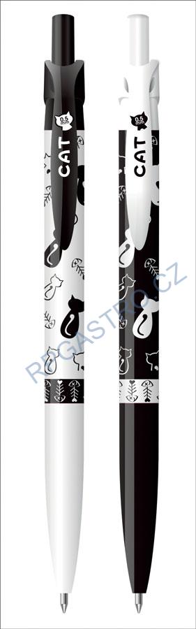 Kuličkové pero s motivem Kočky. Prodáváme ve dvou barevných variantách. Jehlový hrot o šíři 0,5 mm. Náhradní náplň A3 (modrá).