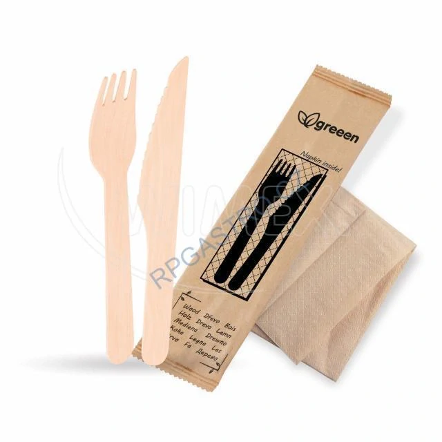 Příborová sada (dřevo FSC 100%) nůž-vidlička+ubrousek [50 sad].