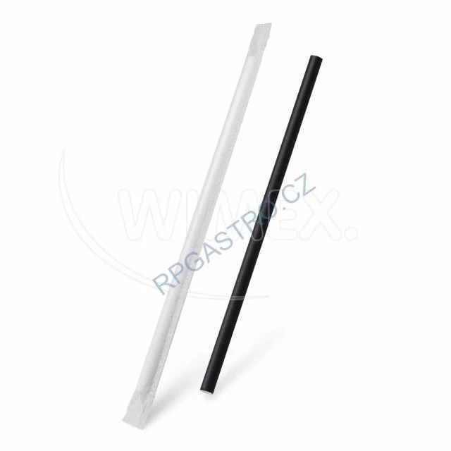 - Slámky papírové Jumbo černé Ø8 mm x 25cm jednotlivě balené [100 ks] (40939)