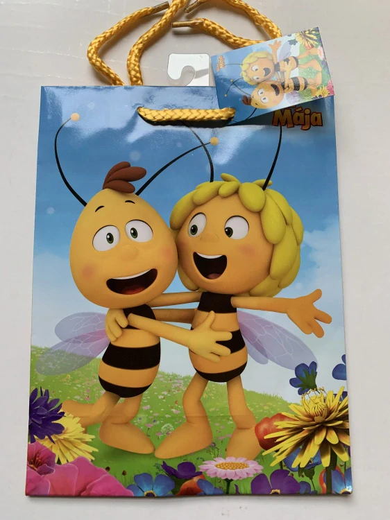 Papírová dárková taška s dětským motivem z pohádky Včelka Mája. Každý dárek musí být v něčem zabalený. Pokud nemáte čas balit ho do balicího papíru, máme pro Vás na výběr nejrůznější dárkové tašky. Taška má pevné ucho pro snadné přenášení a štítek pro vepsání jména či přání.