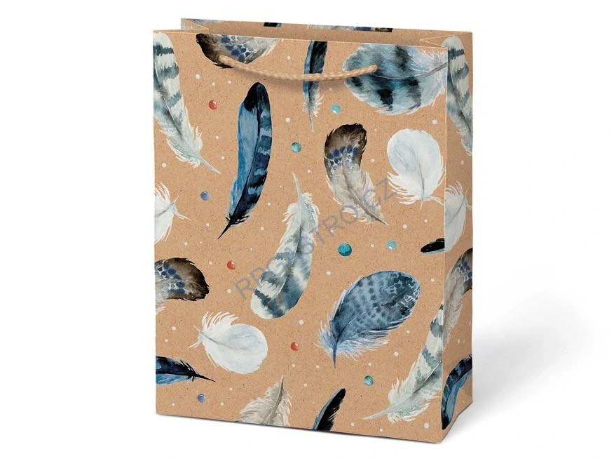 - Papírová taška dárková vel.M KRAFT motiv barevná pírka 190x250x90 mm (5251454.1)