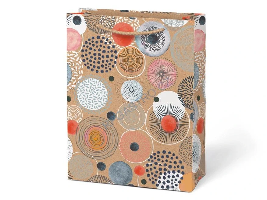 Papírová dárková taška M KRAFT z pevného kraftového papíru s barevným potiskem. Taška má pletená textilní ucha a kartičku kam můžete napsat jméno nebo krátké věnování. Pokud nemáte čas balit dárek do dárkového balícího papíru tak právě pro Vás máme široký výběr dárkových tašek.