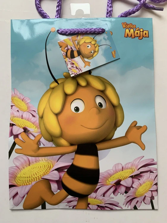 Papírová dárková taška s dětským motivem z pohádky Včelka Mája. Každý dárek musí být v něčem zabalený. Pokud nemáte čas balit ho do balicího papíru, máme pro Vás na výběr nejrůznější dárkové tašky. Taška má pevné ucho pro snadné přenášení a štítek pro vepsání jména či přání.